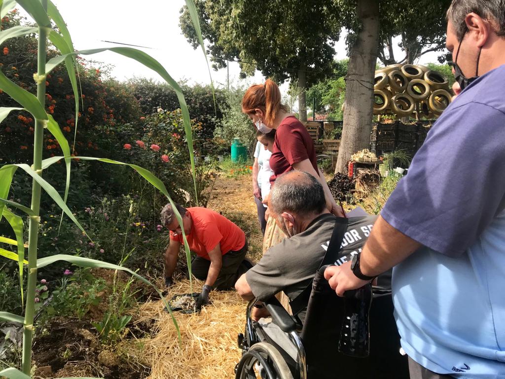 En el año 2020 se ha iniciado una nueva etapa en el huerto del CEPer Poligono Sur gracias a la iniciativa impulsada por el Distrito del Polígono Sur que consiste en un Taller teórico/ práctico de Agricultura Ecológica impartido por Luciano Furcas, Tiziana De Angelis y Zoé Schmitt, co-fundadores del colectivo ylovivo, asociación que promueve el diseño de tejidos urbanos sostenibles y resilientes a través de la Permacultura. La Permacultura es una practica holística que se basa en 3 principios: el cuidado de la persona, de la tierra y la consciente aportación que tod@s debemos hacer hacia su autoregeneración. Desde esta perspectiva las actividades propuestas en el taller se han convertido en una herramienta de aprendizaje para transmitir no solo la manera ecológica de cultivar un huerto, sino también para impulsar procesos de transformación social e innovación medioambiental que favorezcan hábitos de vida y practicas sostenibles y saludables basados en la autosuficiencia y la autoproducción .