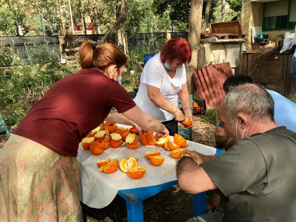 Un día en el huerto con la clase de patrimonio uno del CEPer. Hemos compartido la experiencia de la siembra de una cucurbitacea, la sidra o cabello de ángel, la creatividad de reutilizar neumáticos y transformarlos en sillas muy cómodas, la regeneración de un recurso abundante como la naranja amarga cuya cáscara rica en vitamina C puede ser secada al sol, sin gastar más energía, y ser utilizada para aromatizar y aportar un exquisito sabor a infusiones o postres con muchos beneficios para nuestra salud.